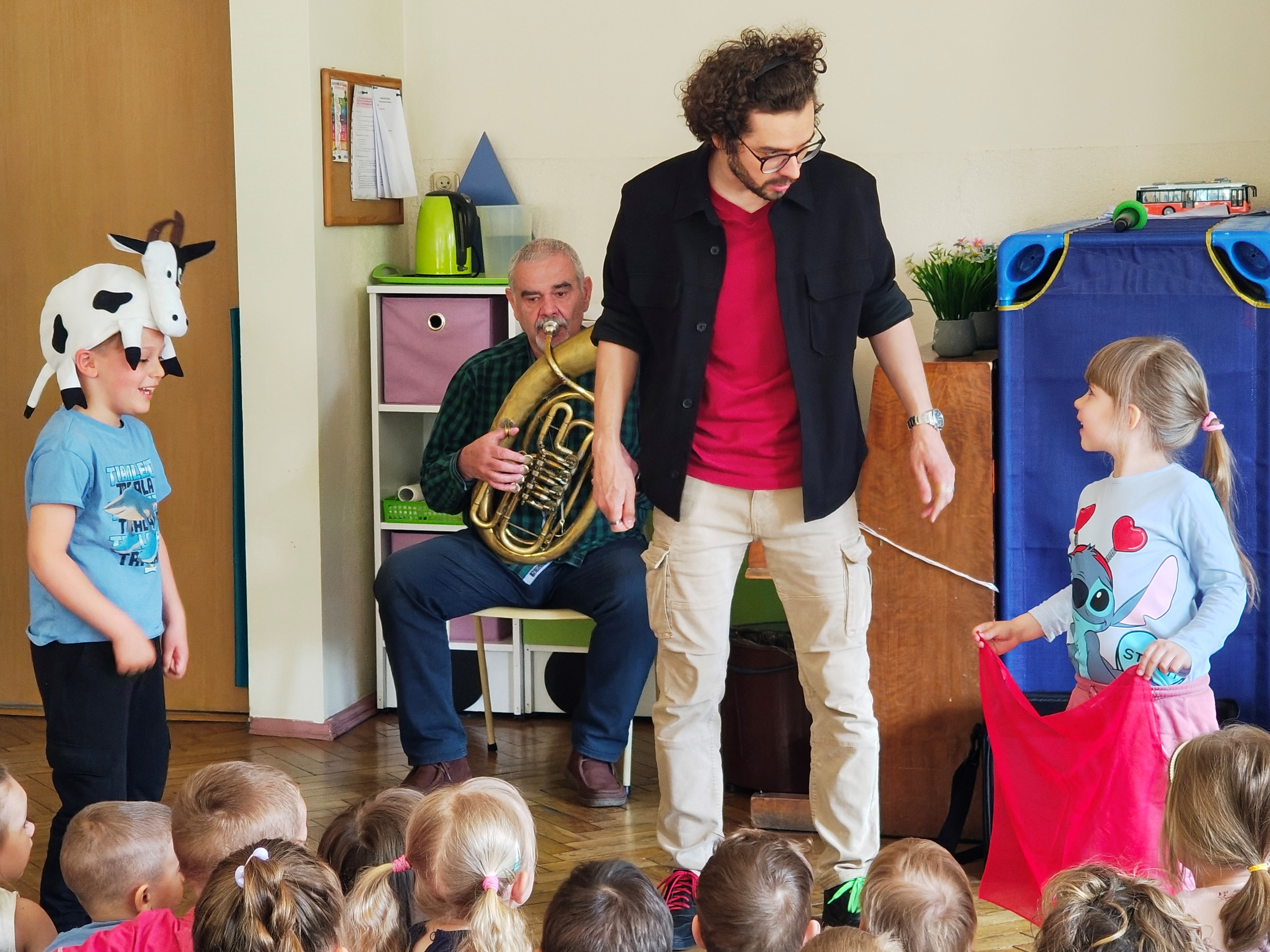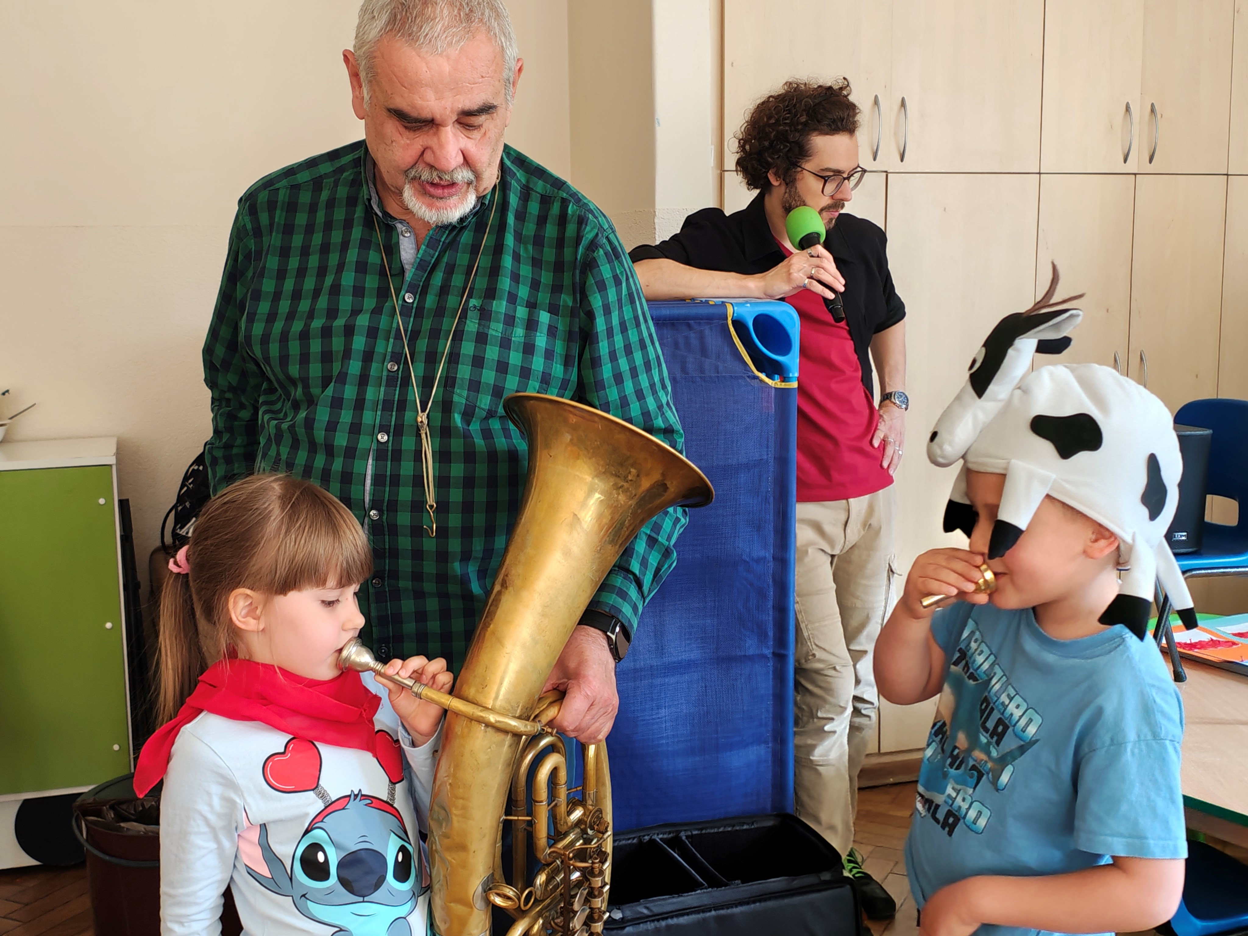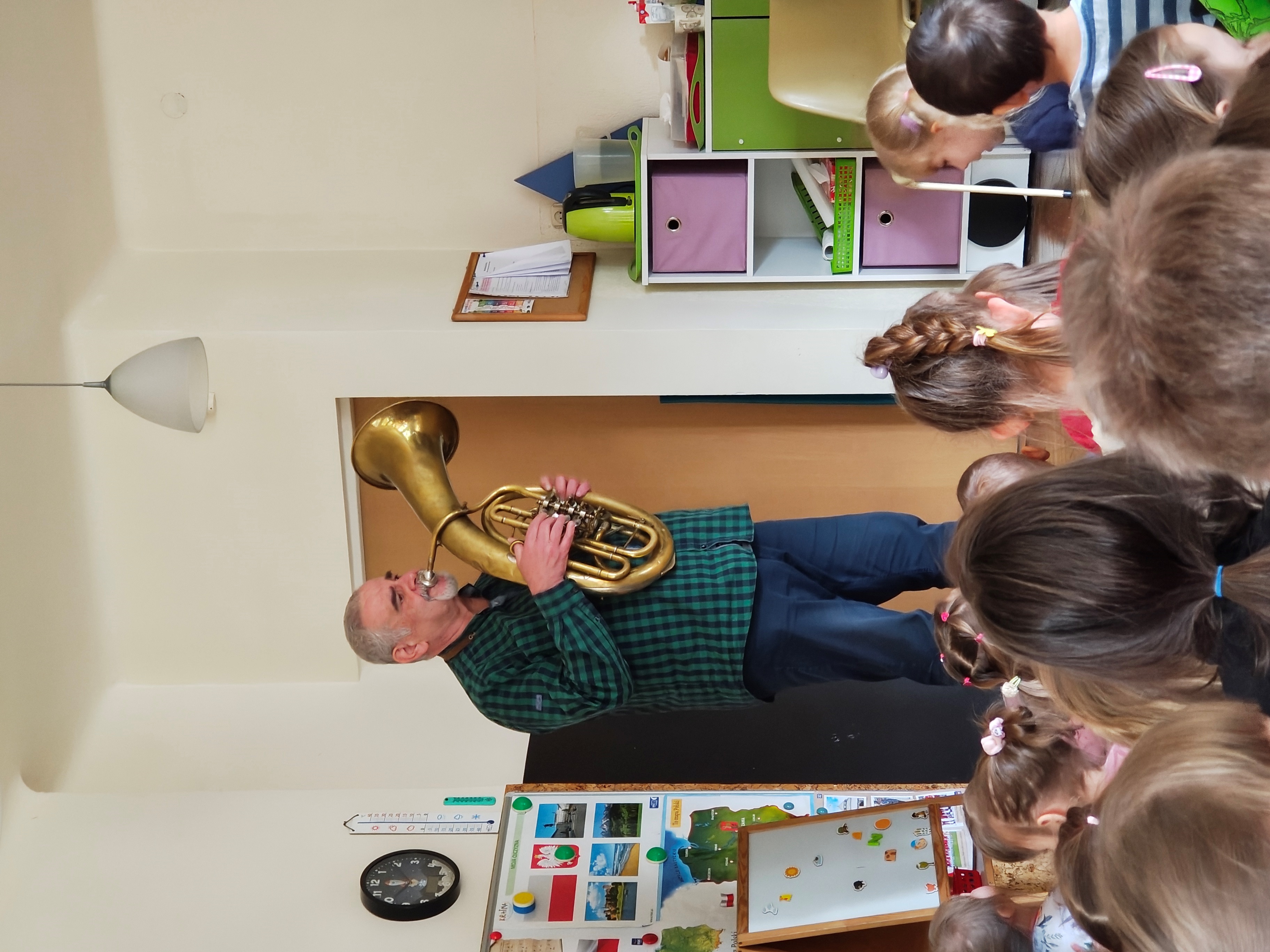 W środę 29.04 w naszym przedszkolu odbyła się audycja muzyczna pt. "Muzyczny zwierzyniec". Przedszkolaki posłuchały jakie dźwięki i melodie grają instrumenty: sakshorn barytonowy oraz tuba.