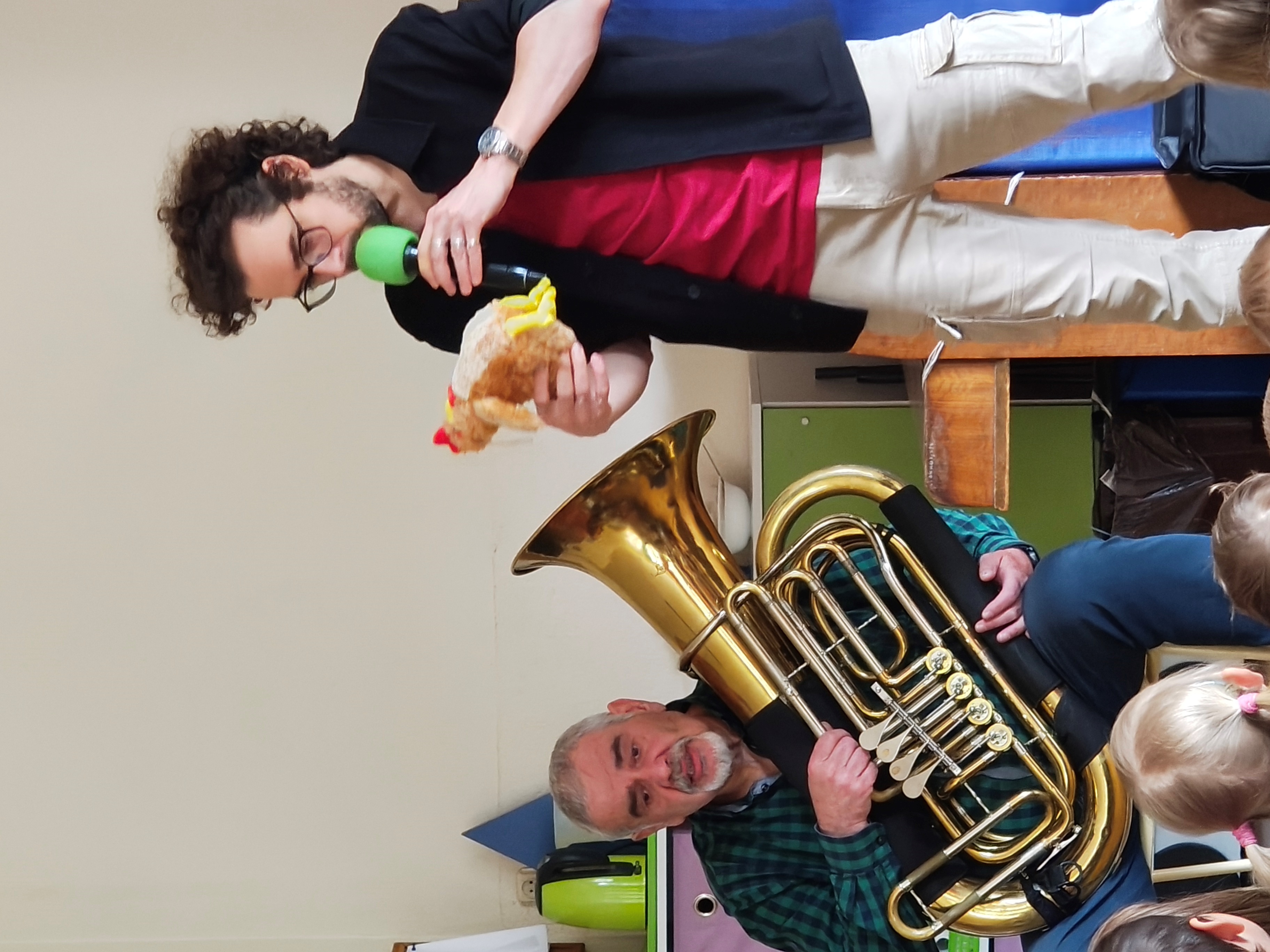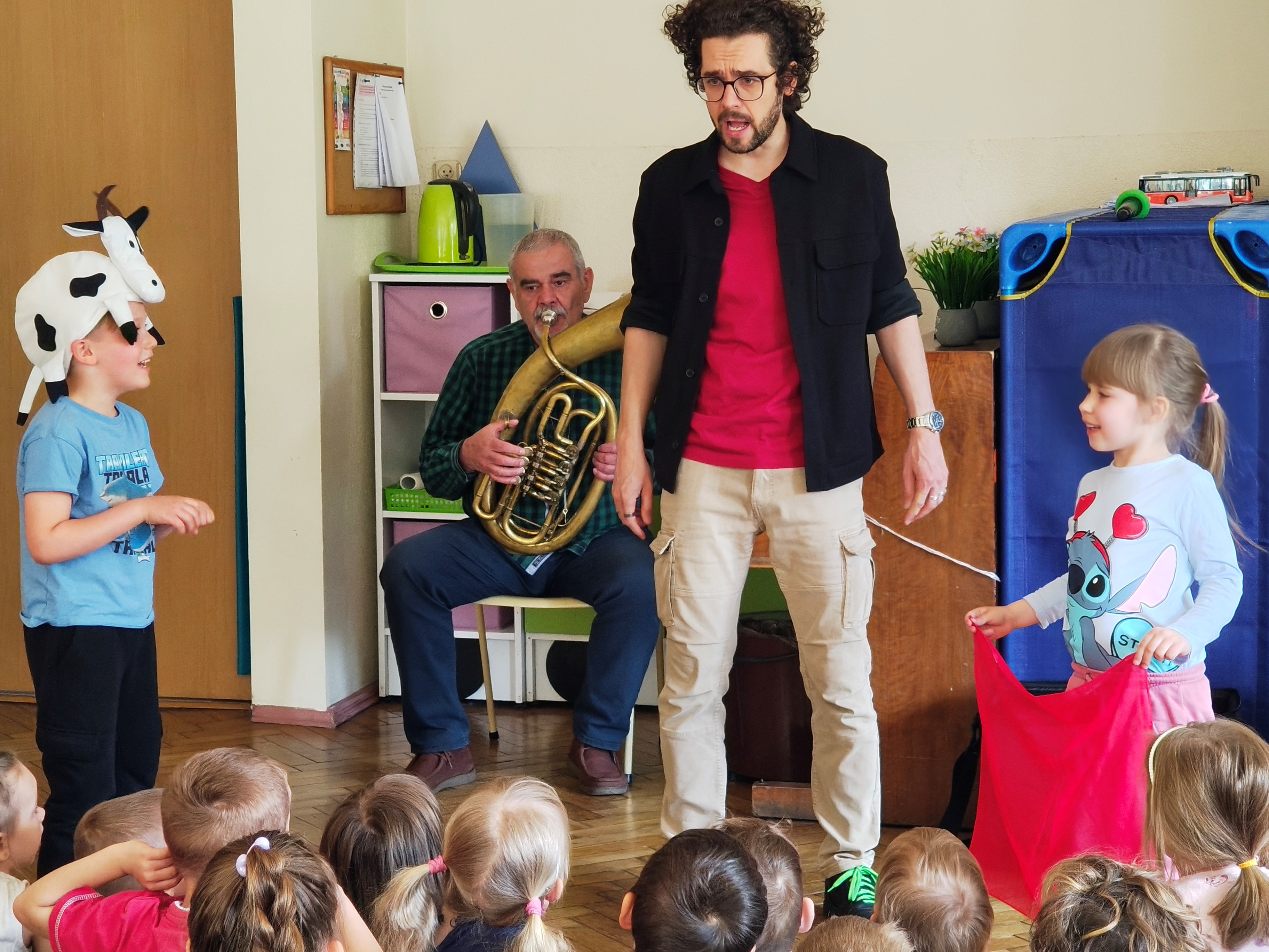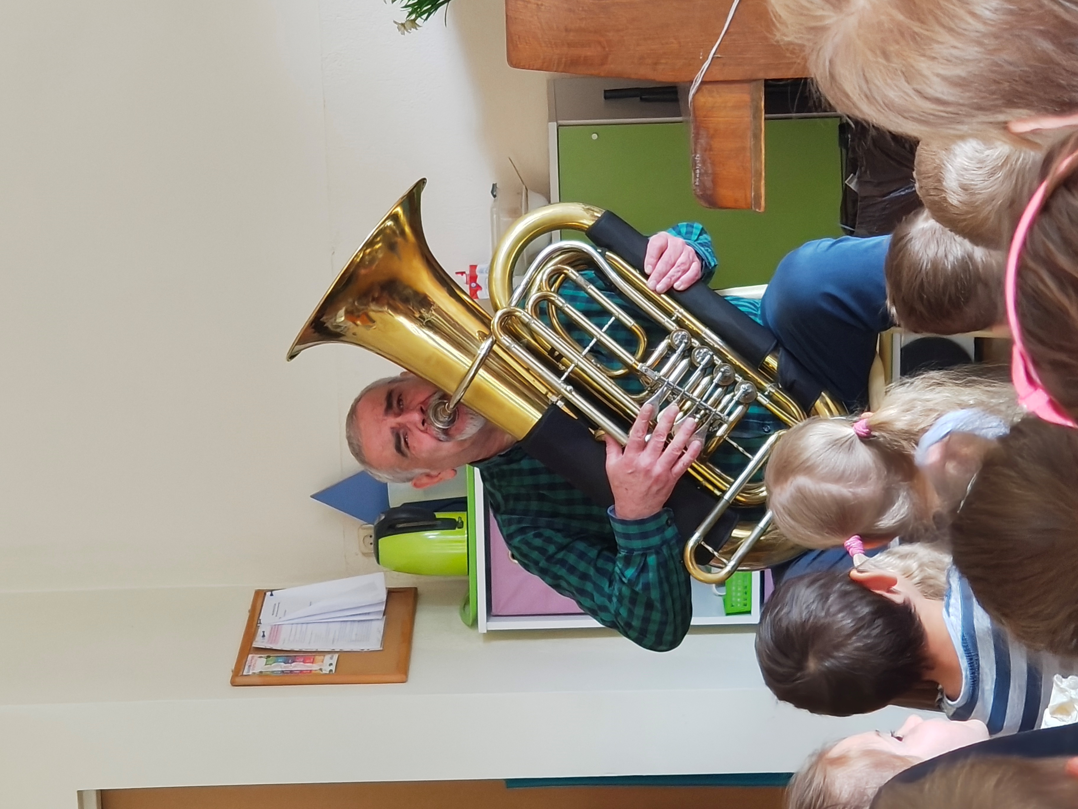 W środę 29.04 w naszym przedszkolu odbyła się audycja muzyczna pt. "Muzyczny zwierzyniec". Przedszkolaki posłuchały jakie dźwięki i melodie grają instrumenty: sakshorn barytonowy oraz tuba.