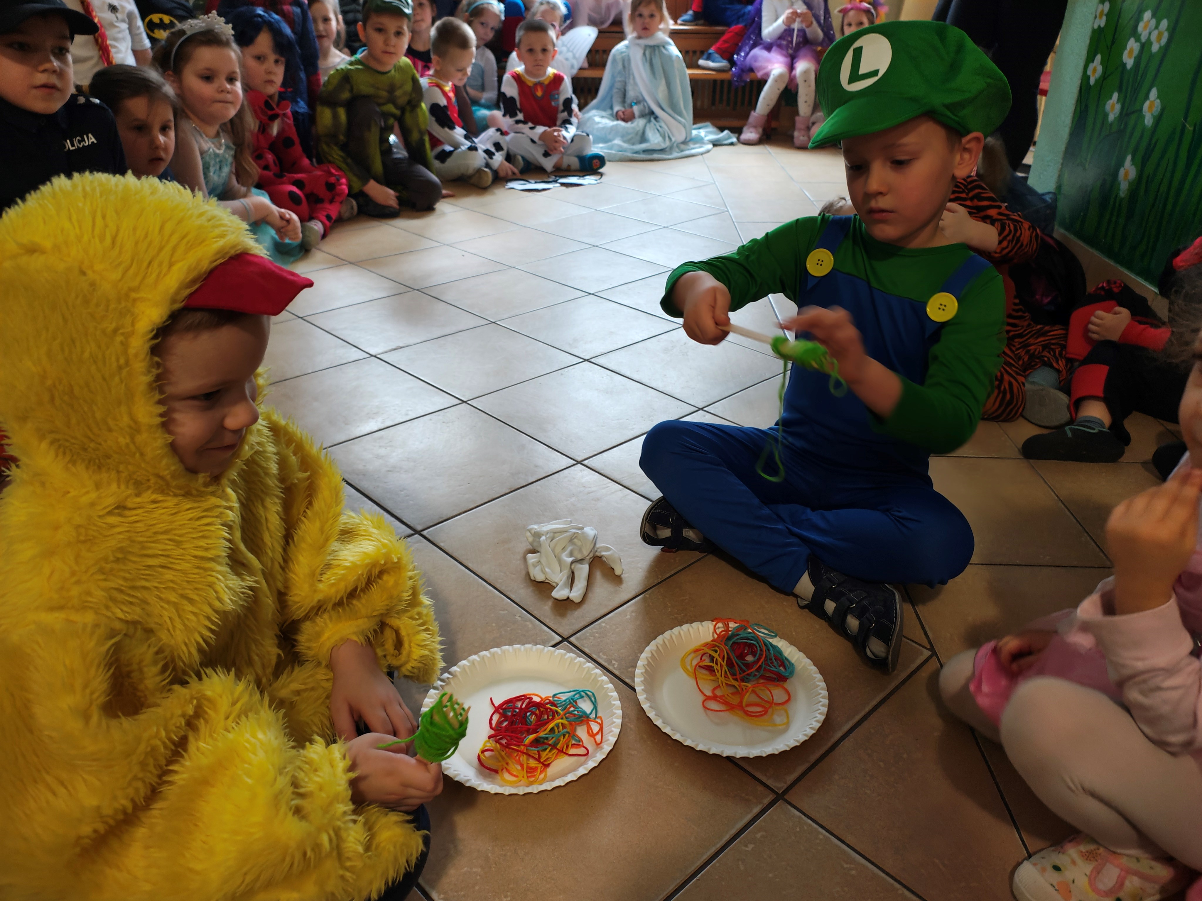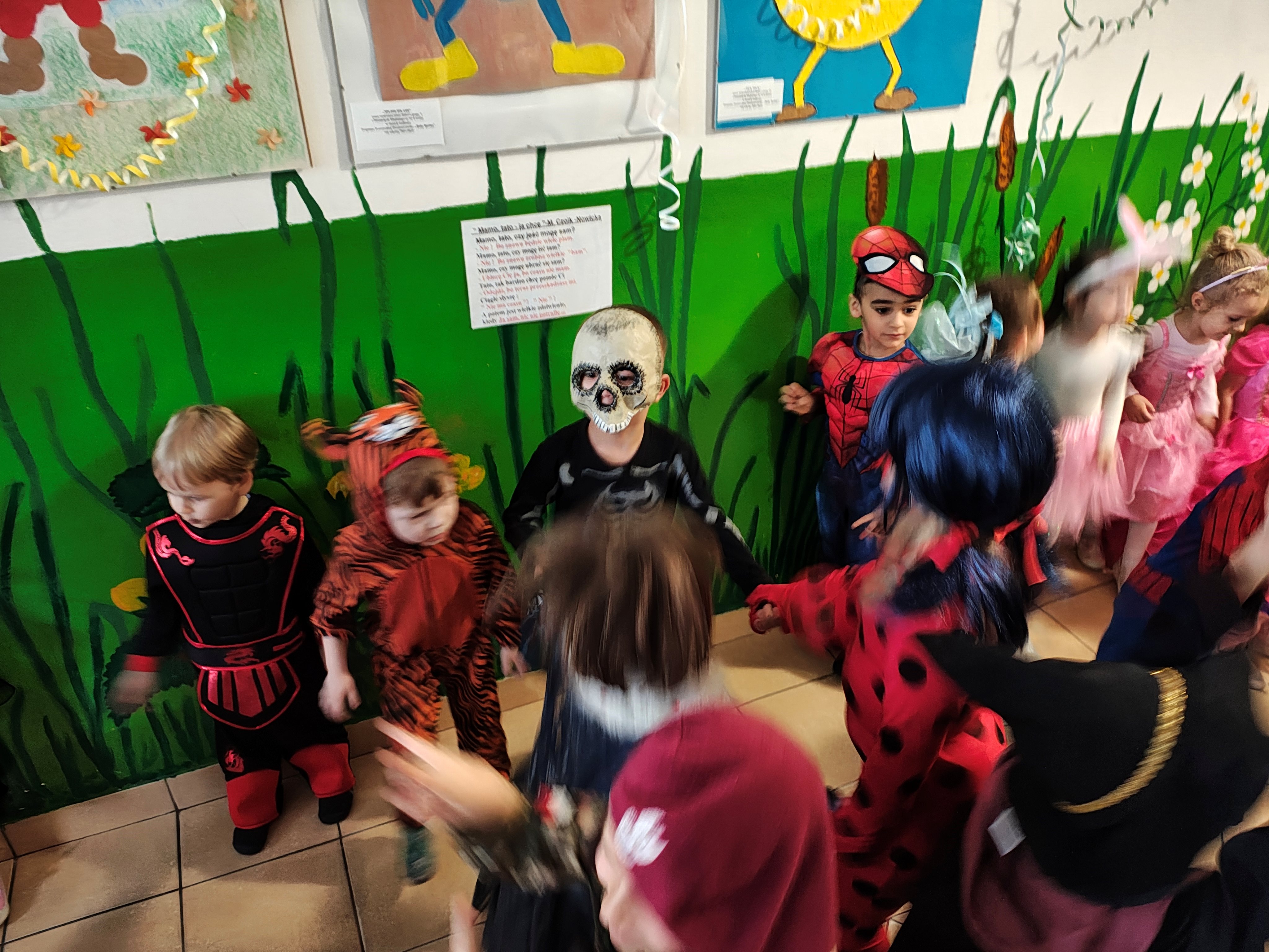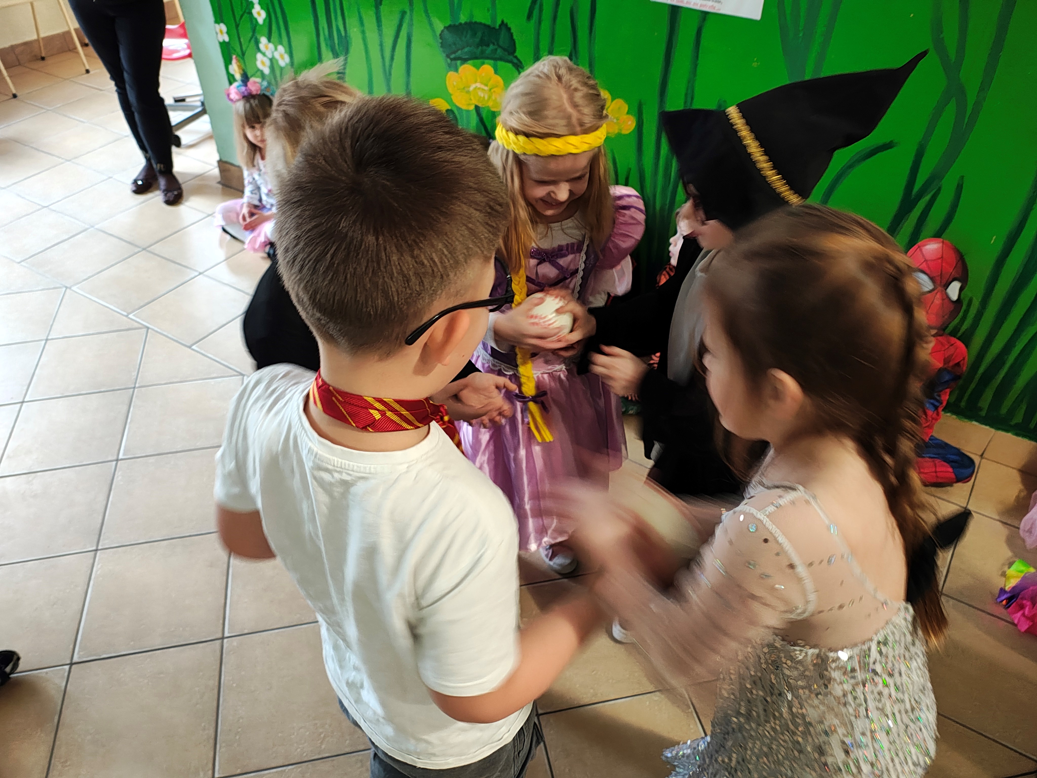 Bal Karnawałowy w naszym przedszkolu odbył się w Tłusty Czwartek. Przedszkolaki poprzebierane w różnorodne stroje brały udział w konkursach oraz, w nawiązaniu do tygodnia włoskiego, poznały wybrane zabawy pochodzące z Włoch. Wspaniale bawiły się również przy włoskich hitach muzycznych. Na zakończenie balu każda grupa ozdobiła maski karnawałowe według własnego pomysłu.