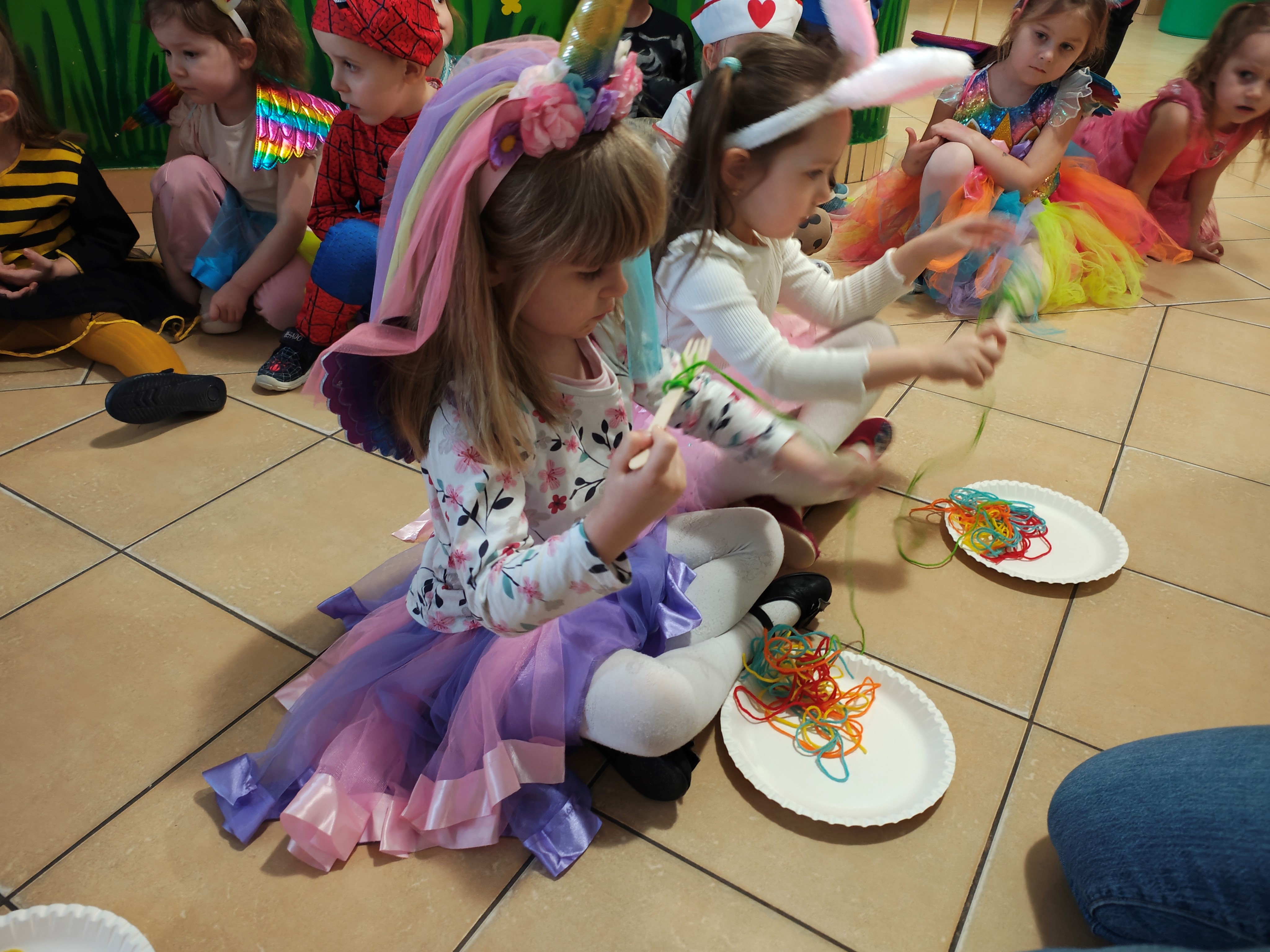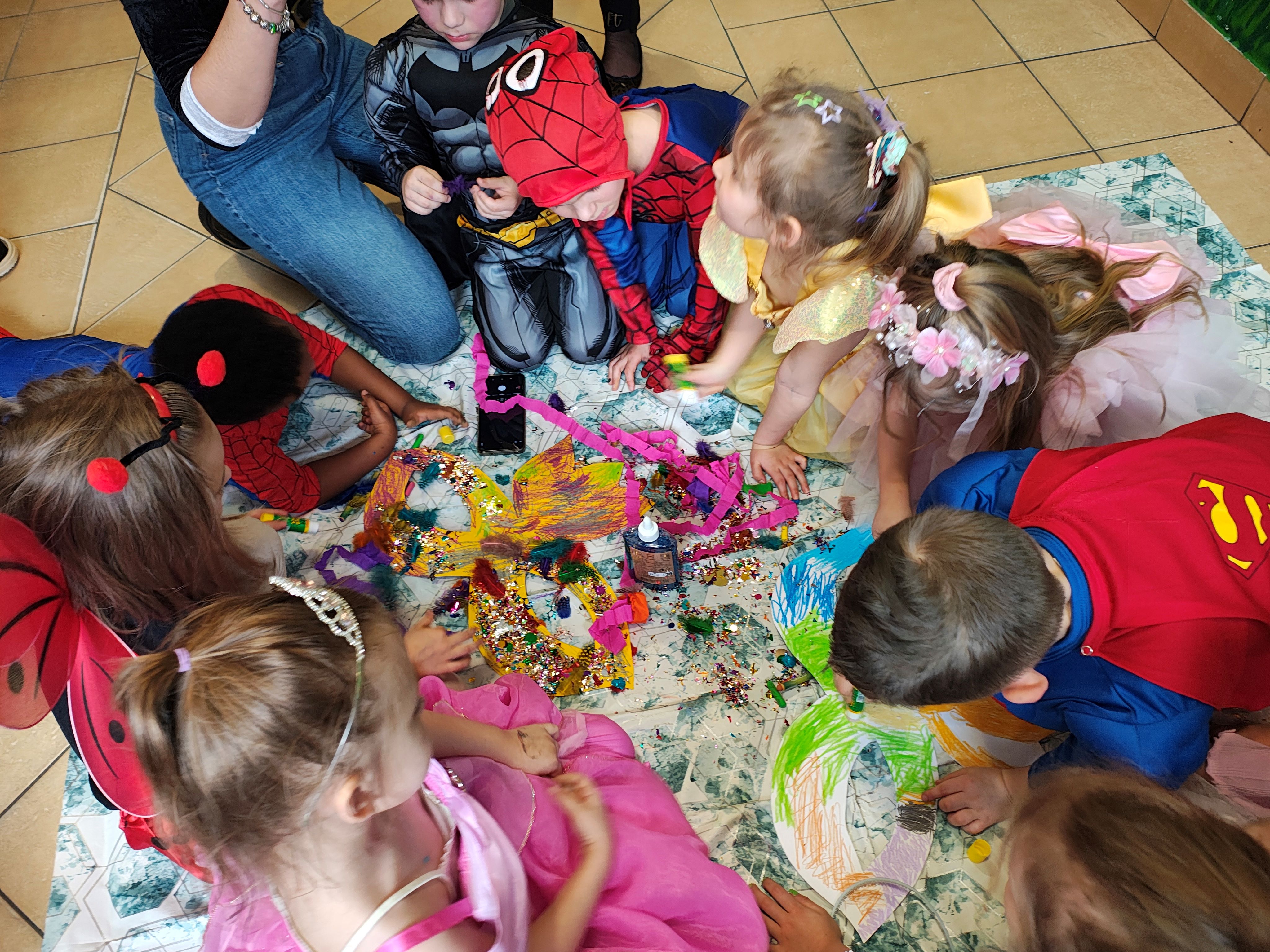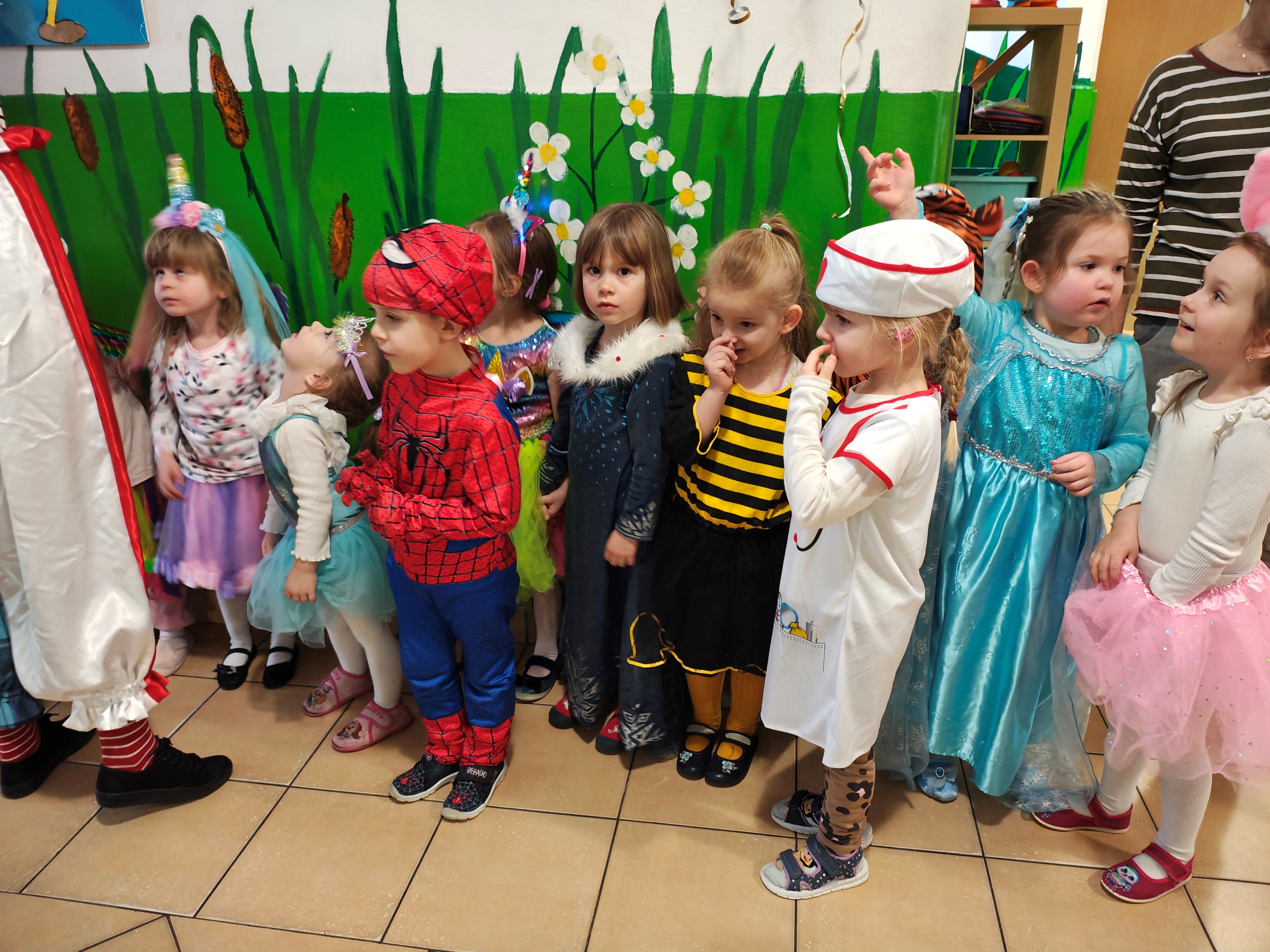 Bal Karnawałowy w naszym przedszkolu odbył się w Tłusty Czwartek. Przedszkolaki poprzebierane w różnorodne stroje brały udział w konkursach oraz, w nawiązaniu do tygodnia włoskiego, poznały wybrane zabawy pochodzące z Włoch. Wspaniale bawiły się również przy włoskich hitach muzycznych. Na zakończenie balu każda grupa ozdobiła maski karnawałowe według własnego pomysłu.