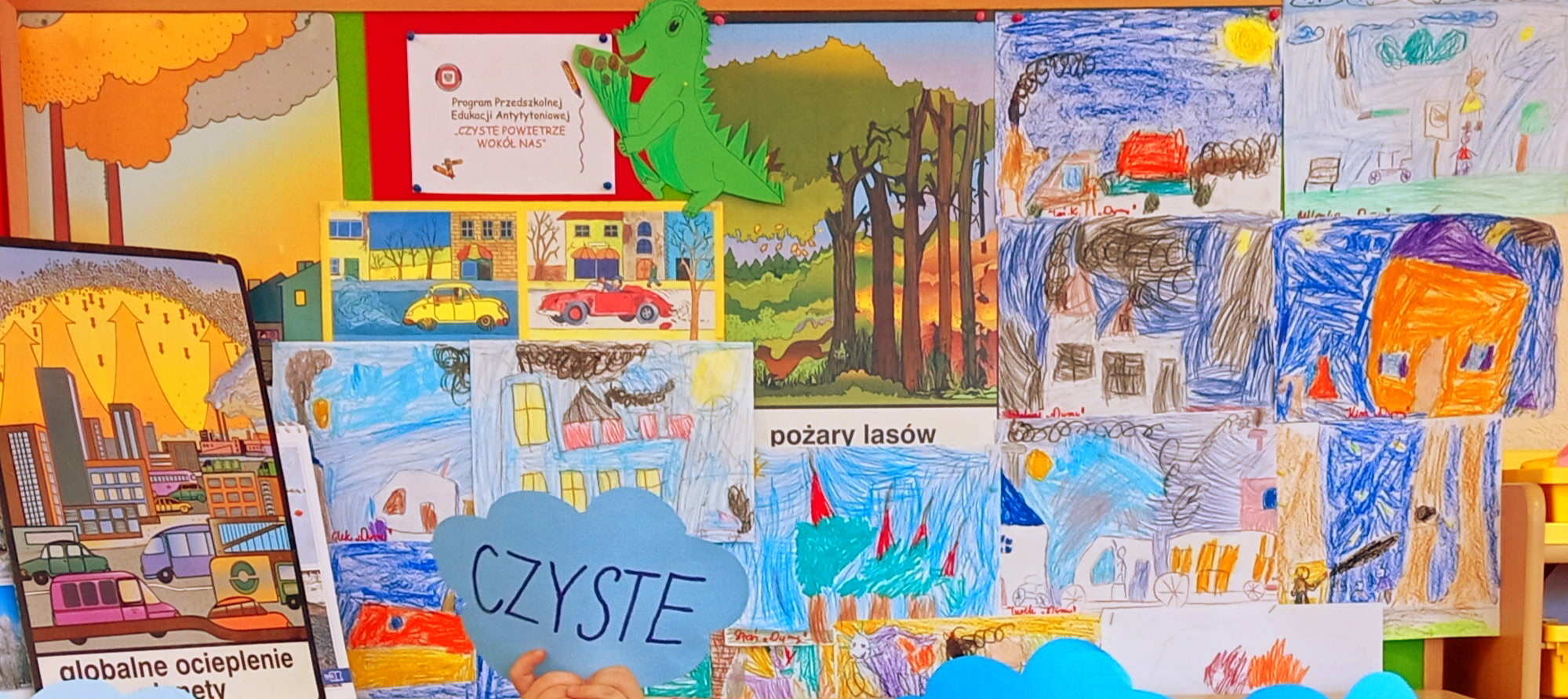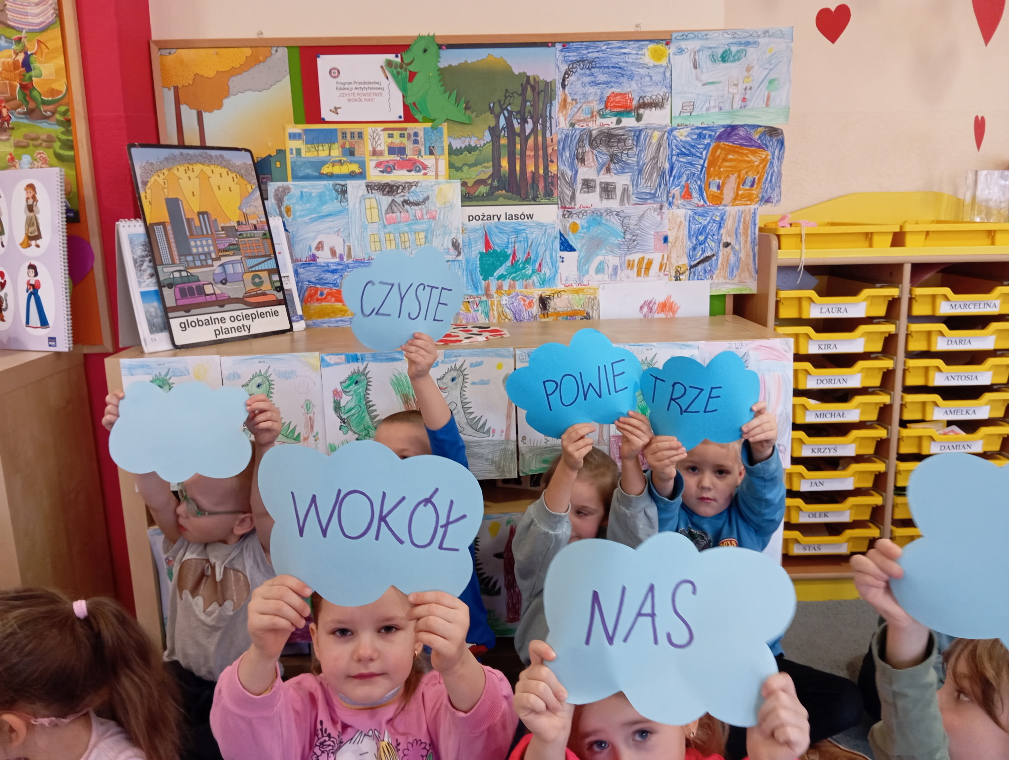 Nasze przedszkole bierze udział w projekcie "Czyste powietrze wokół nas". Grupa III dowiedziała się co zanieczyszcza powietrze i w jaki sposób możemy zadbać o środowisko. Dzieci wykonały również plastyczne dotyczące dymów i projektu.