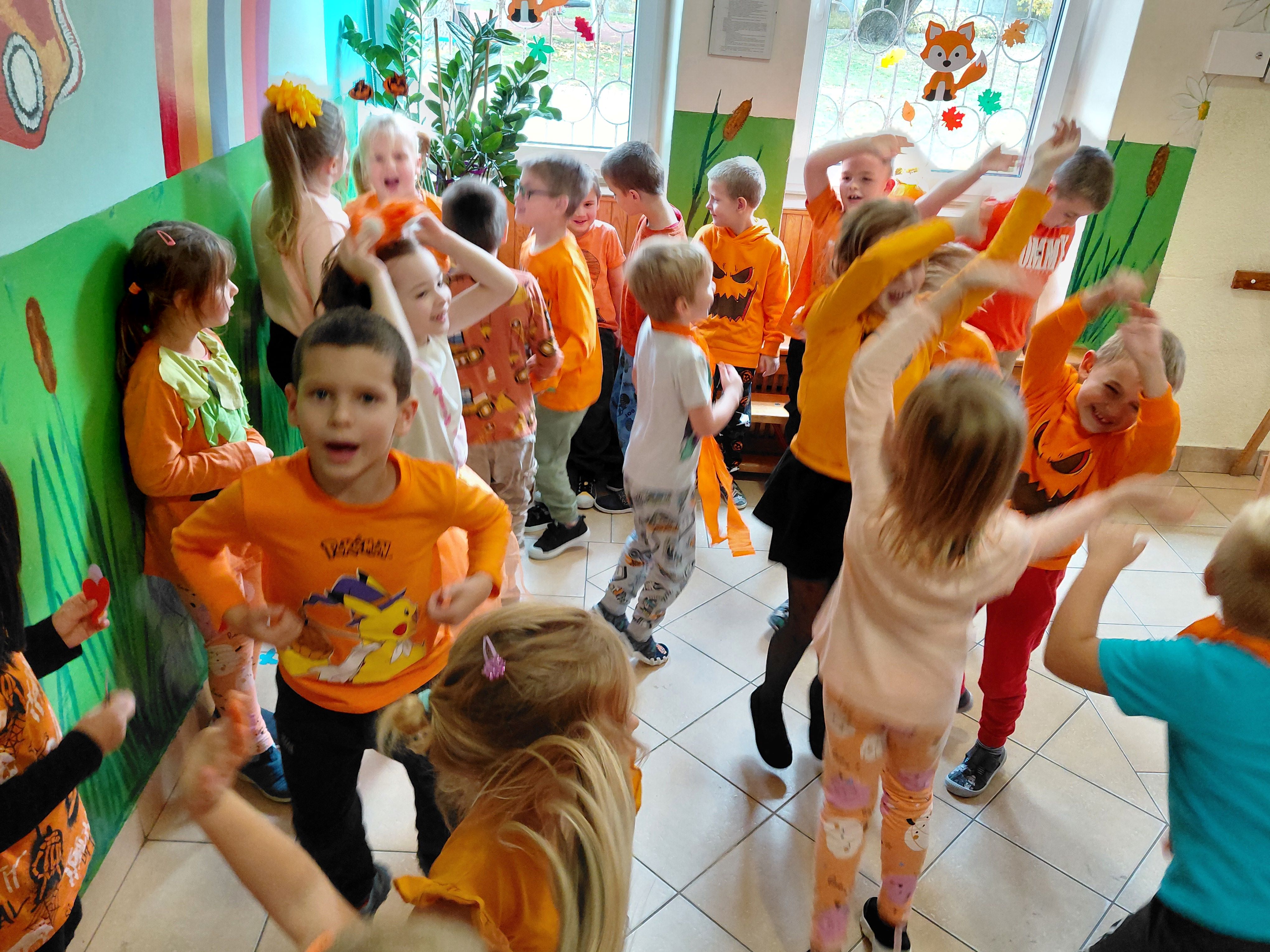 W czwartek 16.10.2025 roku w przedszkolu odbył się bal z okazji Dnia Dyni. Przedszkolaki ubrane na pomarańczowo tańczyły, bawiły się oraz brazły udział w konkursach. Dziękujemy Pani Sylwii za wspaniale przygotowany bal.