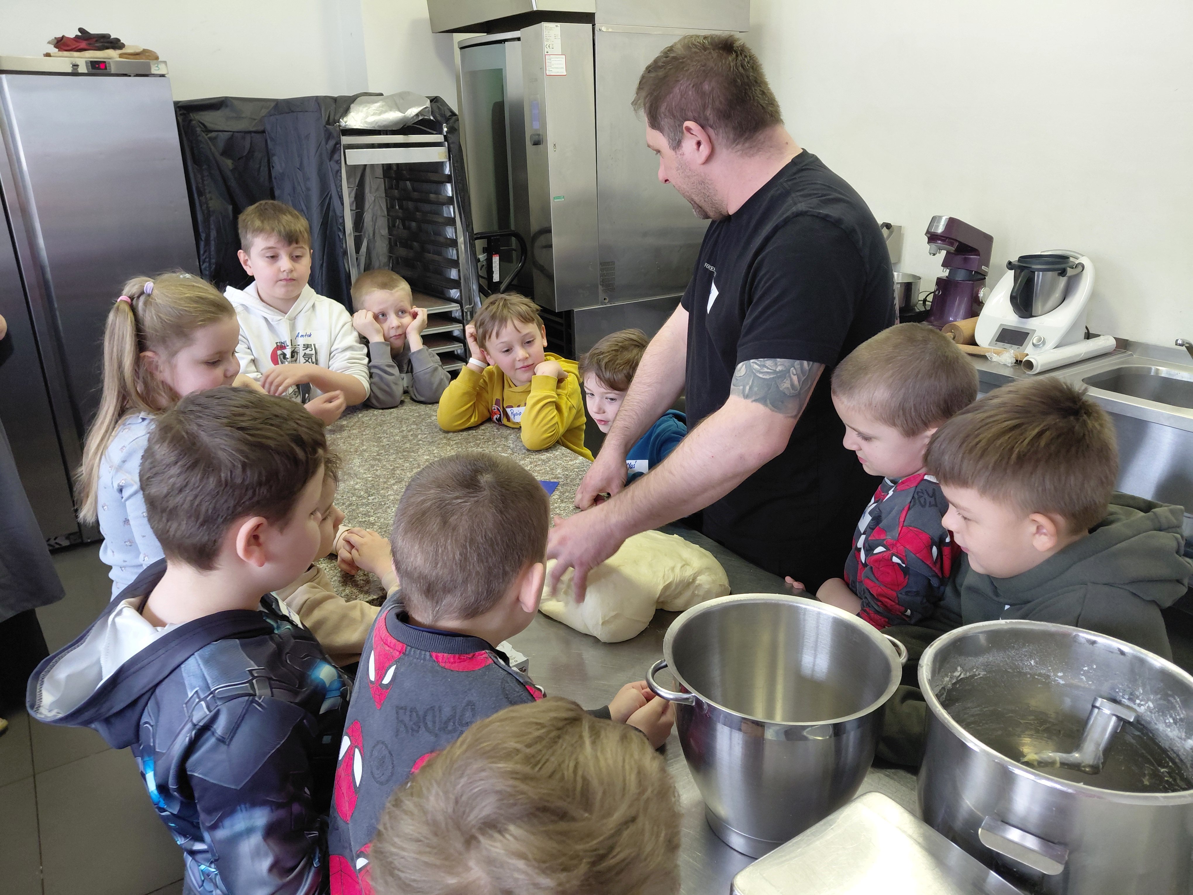 Z okazji Dnia Piekarza, grupa II odwiedziła pobliską piekarnię "Recepturę". Przedszkolaki przygotowywały ciasto, ważyły kawałki ciasta, formowały i dekorowały bułki. Bardzo dziękujemy za wspaniałe warsztaty.