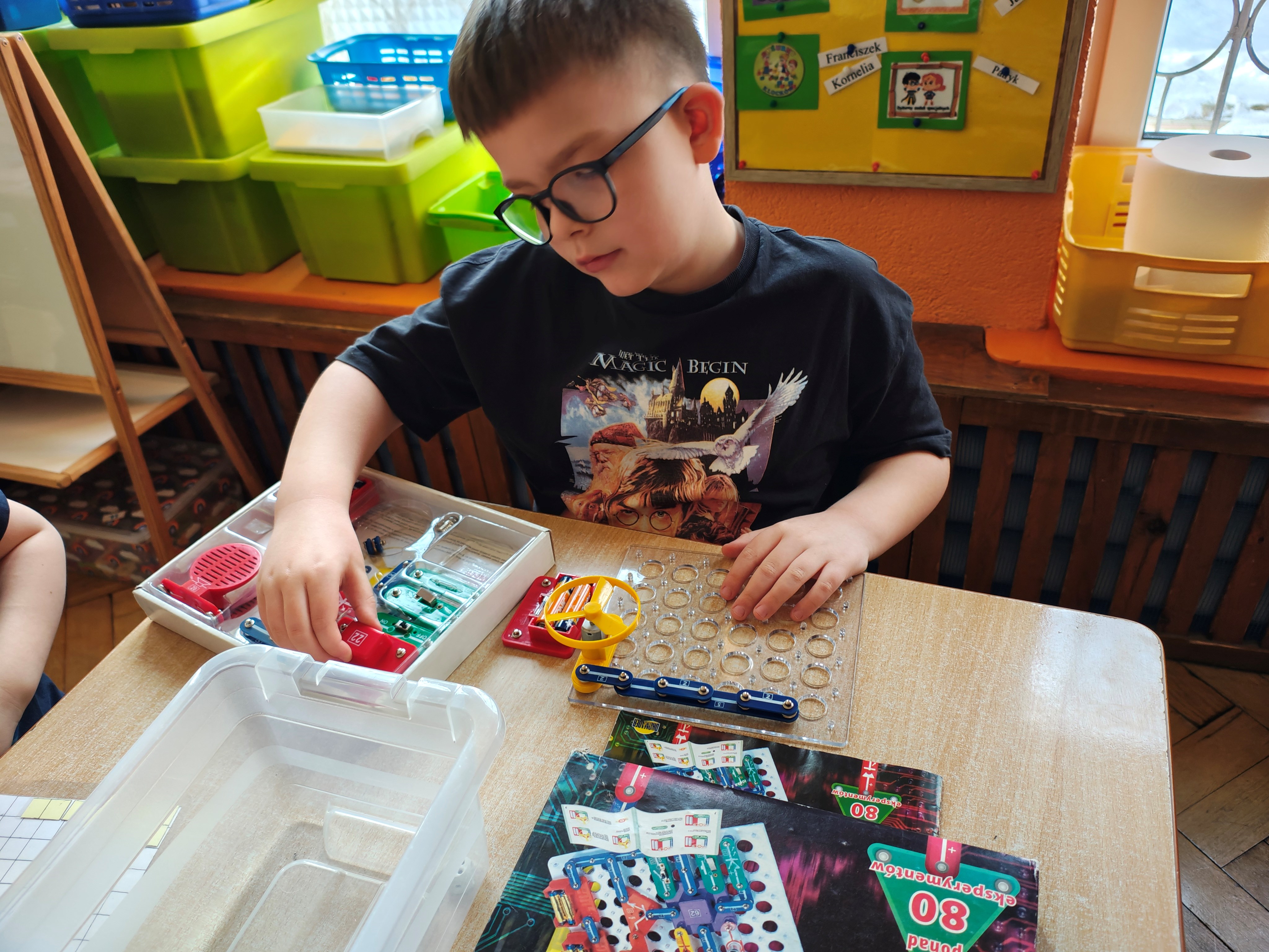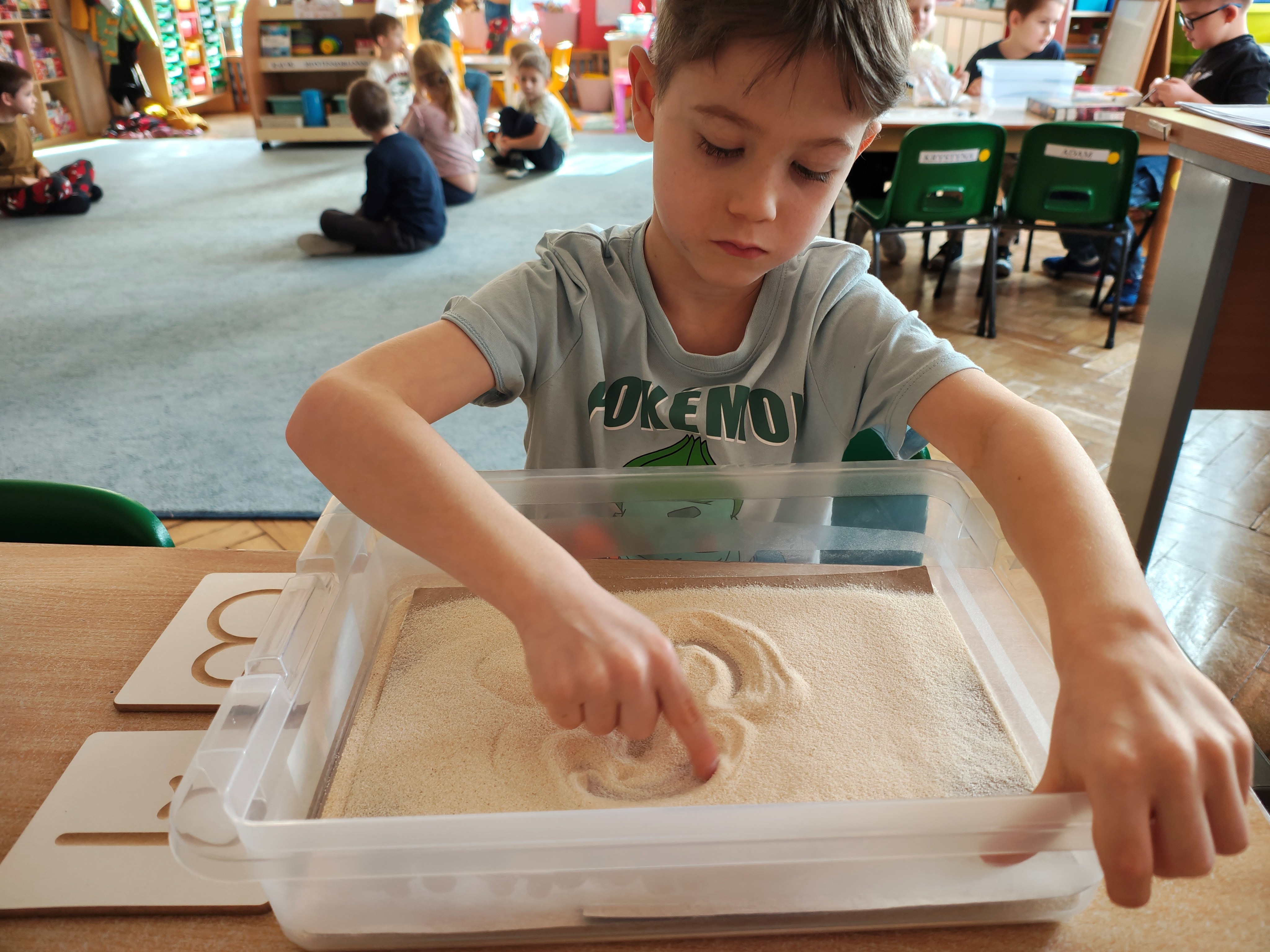 W naszym przedszkolu, podczas zajęć grupowych i indywidualnych z dziećmi wykorzystujemy elementy metody Marii Montessori. Przedszkolaki mają możliwość samodzielnie zdobywać oraz utrwalać wiedzę i umiejętności poprzez pracę z pomocami montessoriańskimi.