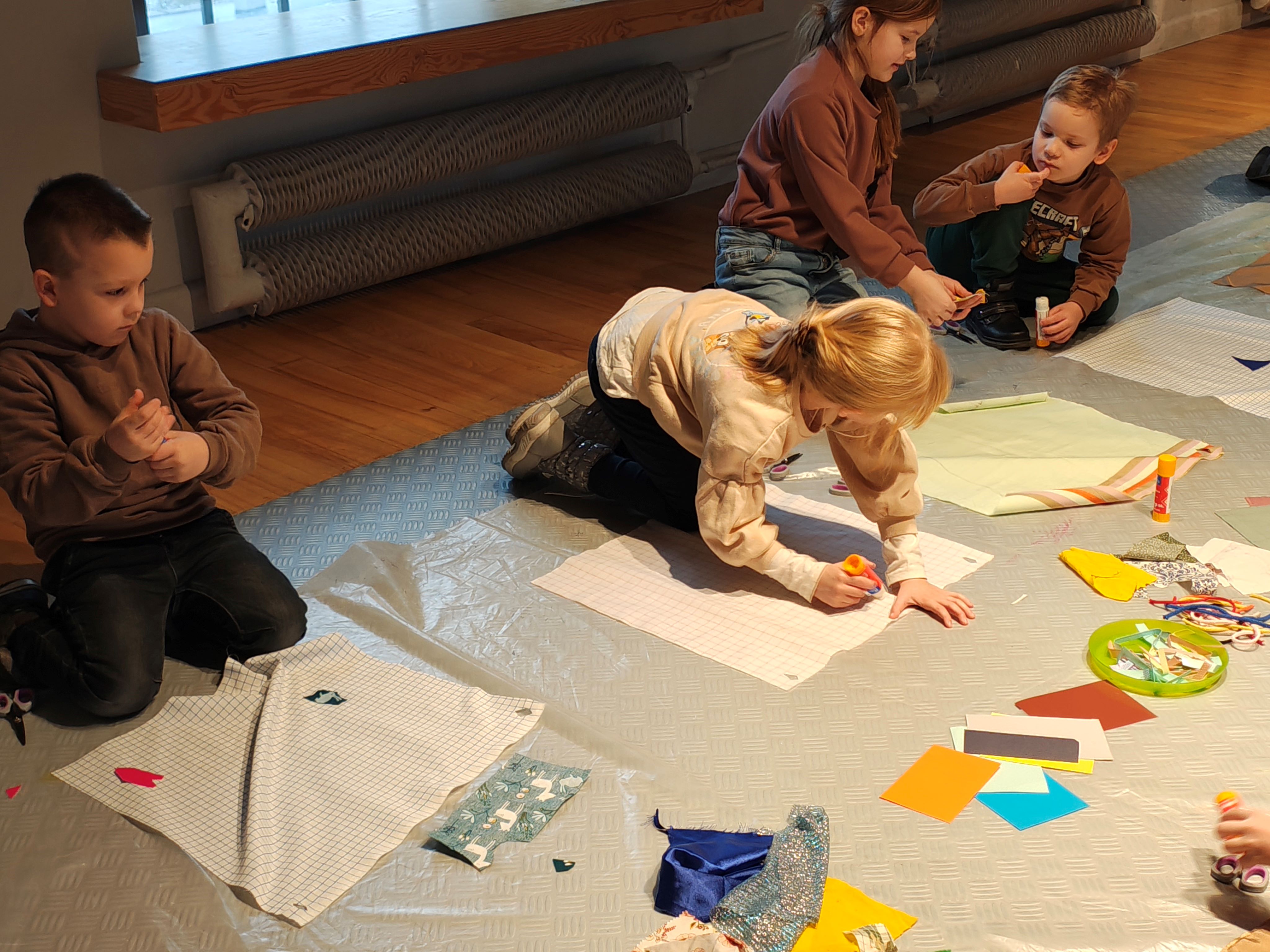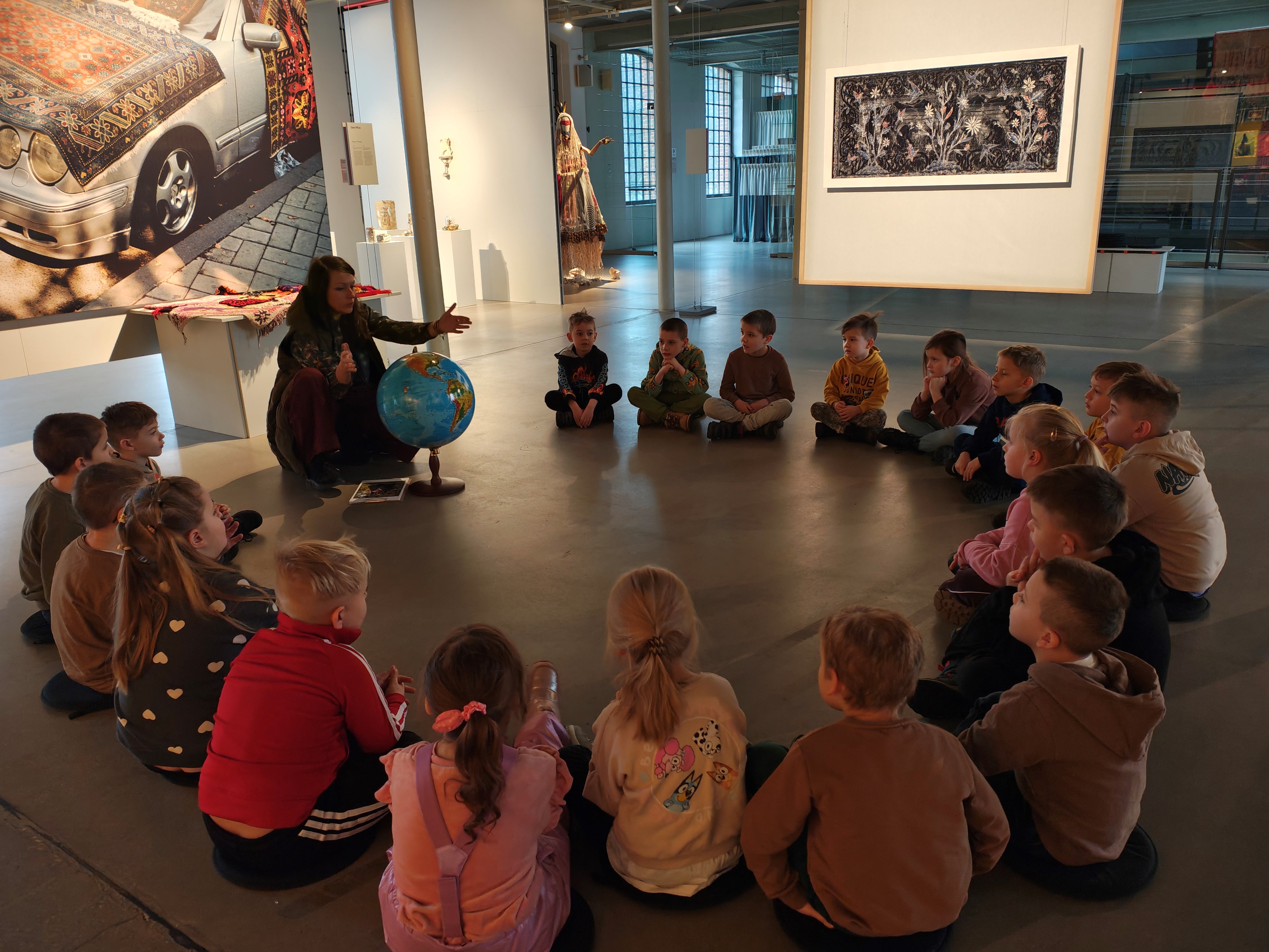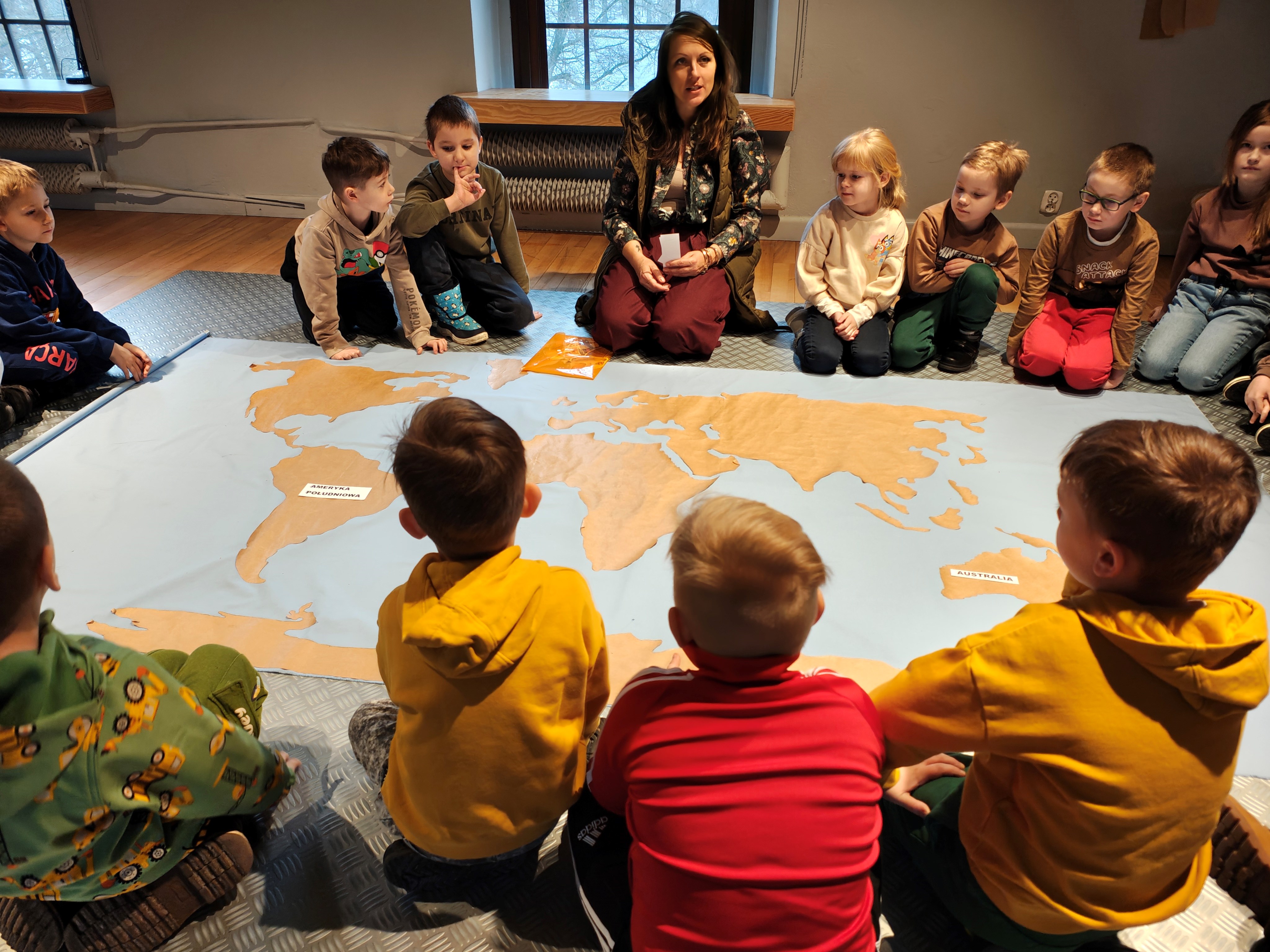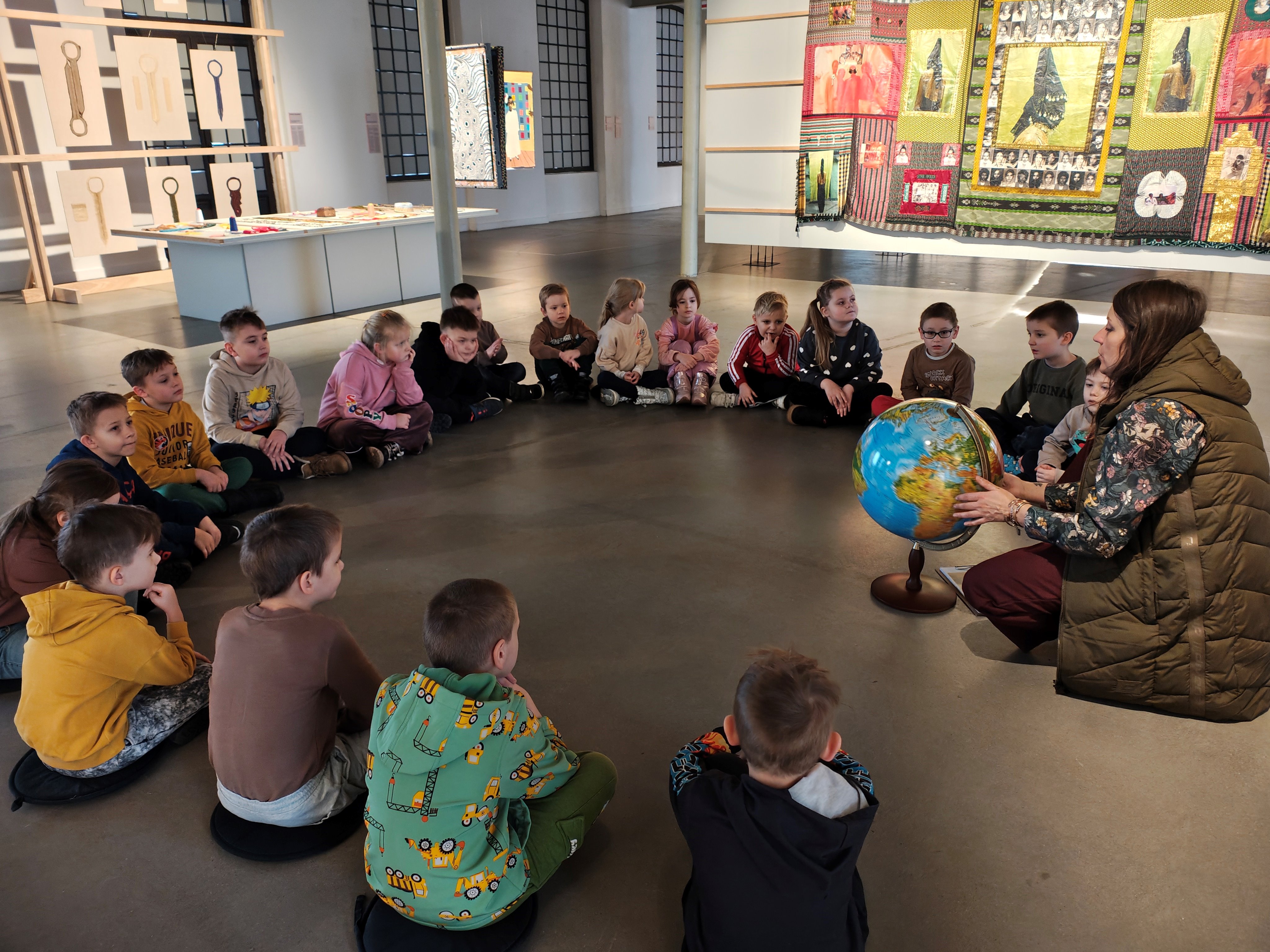 We wtorek 10.02 grupa II wzięła udział w warsztatach pt. "Cztery strony świata" w Muzeum Włókiennictwa. Przedszkolaki poznały wzory tworzone na materiałach i ubraniach przez ludzi na różnych kontynentach. Mogły również samodzielnie stworzyć swoją pelerynę. Dekrowały ją różnorodnymi materiałami, sznurkami oraz papierem.